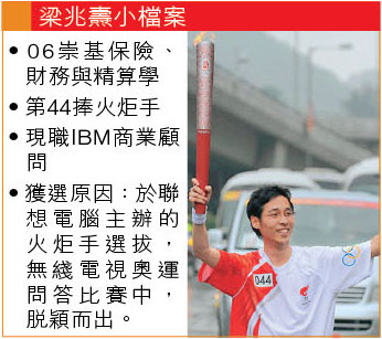梁兆燾是青年協會成員,曾帶團往韓國交流,參加國際青年論壇,故獲青協推荐為贊助商的火炬手,可惜名落孫山。後來他惡補奧運知識,終於在奧運問答比賽中表現出色,得償素願。